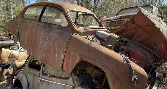 En förbrukad Morris återvinns genom bildemontering i Göteborg