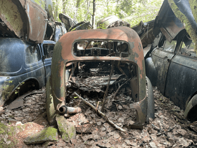 Så en Länsstyrelsen godkänd bilskrot i Lerum ser med dysterhet hur en avdankad klimat- och trafikfarlig Peugeot-403 åker förbi sin anläggning.